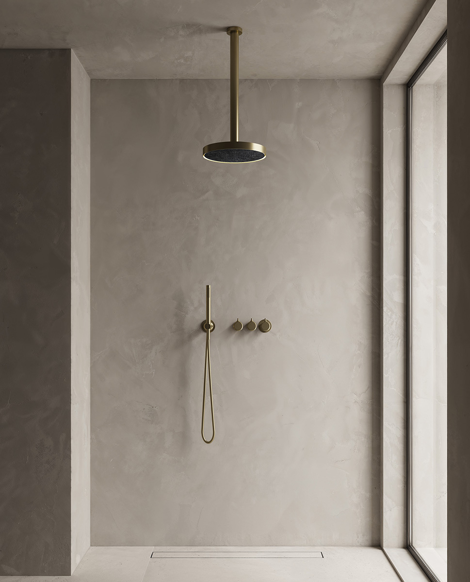 Il progetto riflette una visione precisa del lusso contemporaneo: materiali preziosi, superfici ricercate e soluzioni tecniche esclusive per trasformare la doccia in un’esperienza immersiva. Il soffione è disponibile in diverse configurazioni progettuali: installazione a soffitto oppure a parete, con braccio di diametro 5 cm per garantire equilibrio strutturale ed estetico al prodotto.