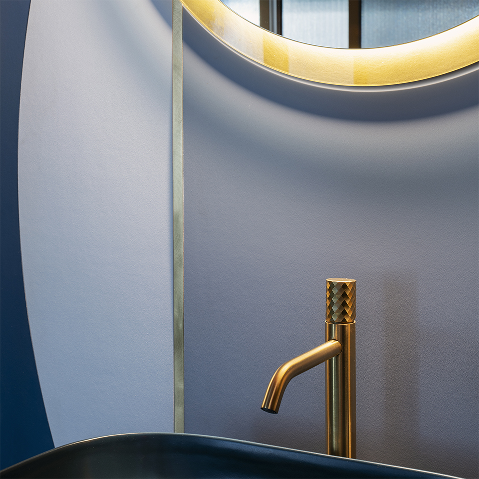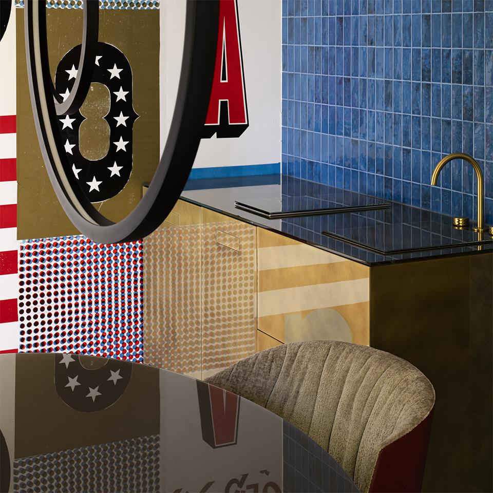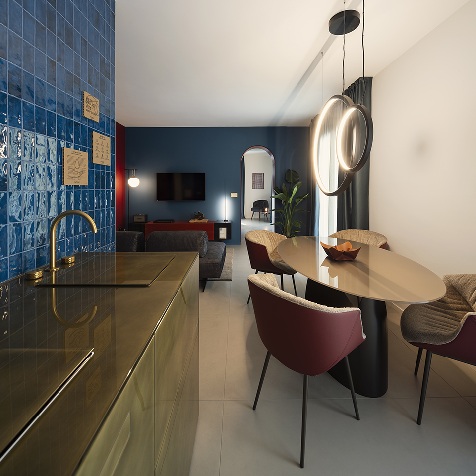 EVOCATIVE GEOMETRIES AND GOLDEN DETAILS: IN THE LIVING WITH KITCHEN CORNER THERE IS TEXTURE COLLECTION